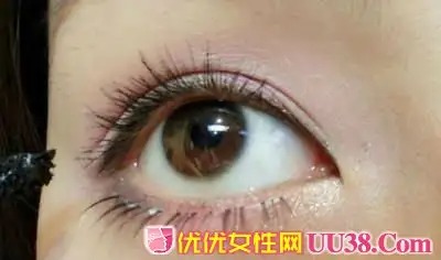 步骤八:为了让眼妆更完美,将假睫毛和自己的睫毛一起刷会比较自然。#p#副标题#e#