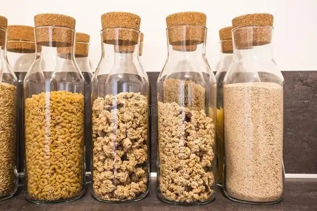 5.厨房的杂粮收纳,想要美观整洁,统一用饮料瓶,这样找起来不费力,贴上标签更方便,即便收纳物品比较多,也能一眼找到,饮料瓶收纳杂粮,夏天还可以防止生虫。