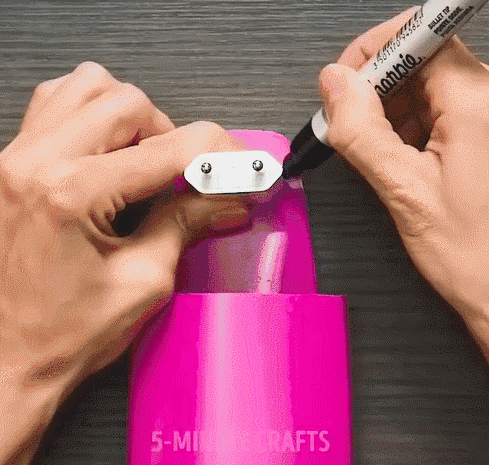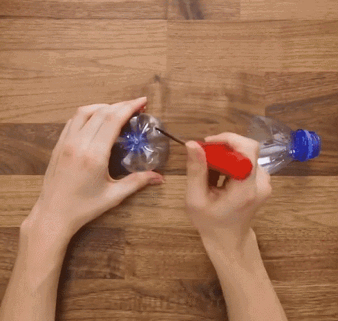 然后,在瓶盖中心打出一个小孔,瓶底座也用同样的方法打孔。
