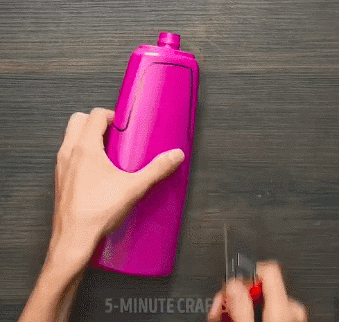 除了矿泉水瓶和可乐瓶,日常洗浴用品的瓶瓶罐罐也能拿来改造哦。你瞧,这个洗发水瓶,就能改造成手机收纳袋。
