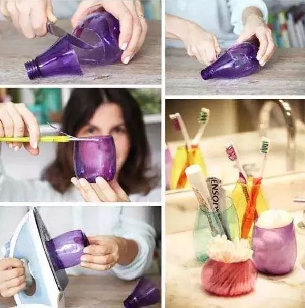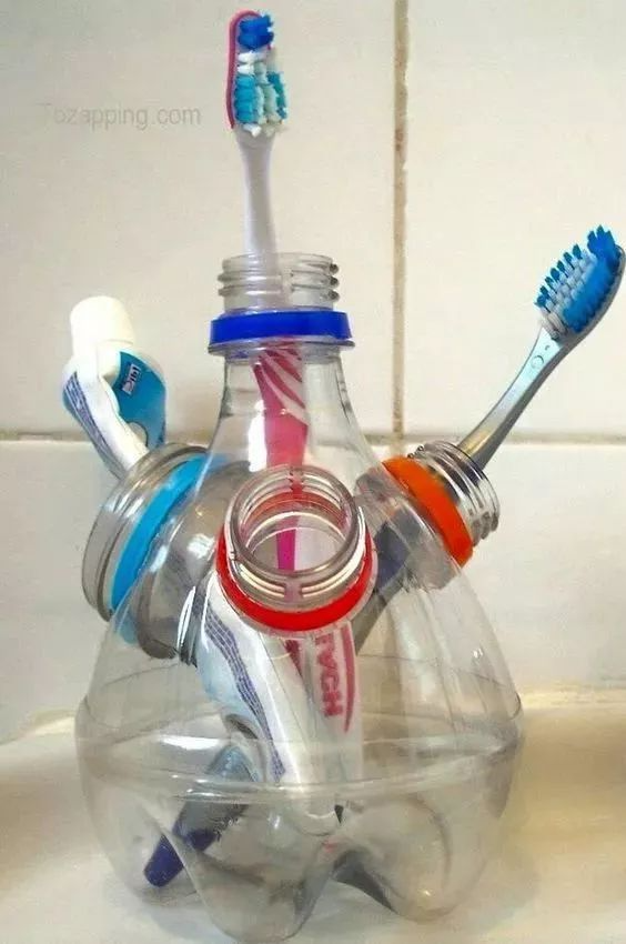一家人的牙刷,怎样有效收纳?这个多插孔的收纳架,相信一定会让你爱不释手。它也是用塑料瓶改造而成的,厉不厉害?