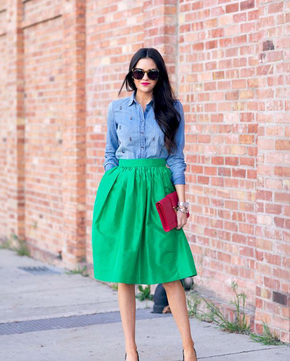 一件简单的高腰半身裙,轻松改进身材比例,打造时髦精致造型!