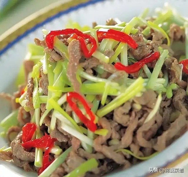 原料 鹅脯 200 克,韭黄、泡椒各适量