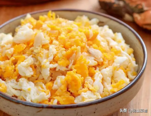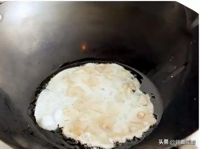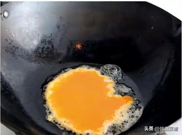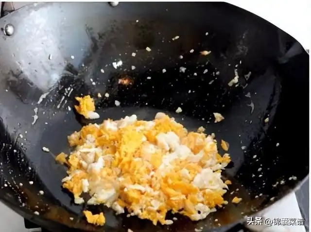5.另起锅,倒入食用油烧热,倒入蛋黄液,翻炒成蛋黄碎。