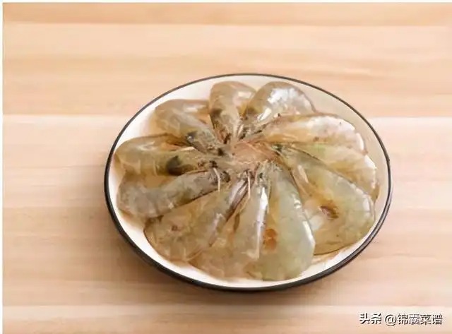 3.将粉丝放入盘中,把虾平铺在粉丝上。