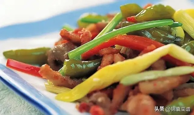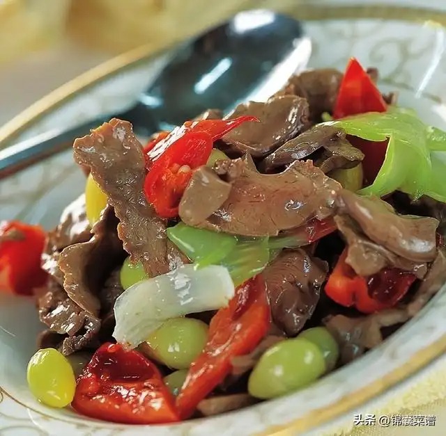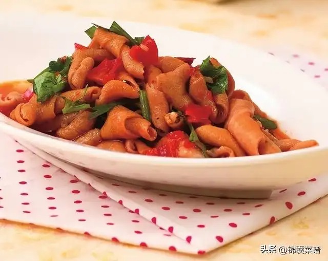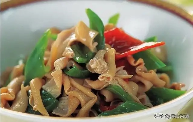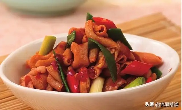 原料 鸭肠 200 克,青椒片 50 克,红椒片 25 克