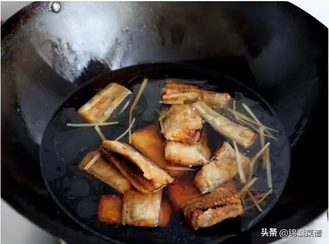 5.锅中加入适量水烧开,下入带鱼,调入老抽、香醋、白糖和盐。
