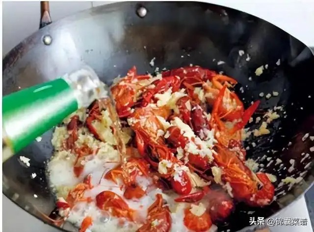 5.下入小龙虾,倒入啤酒,大火烧开。