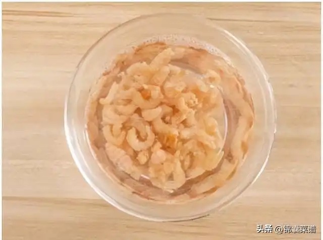 3.取 30 克虾干放入温水中,浸泡 30 分钟左右至虾干变软。