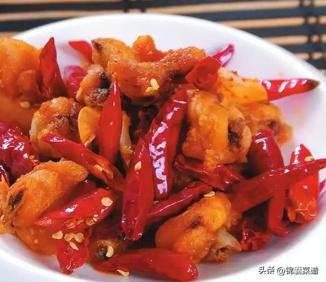 原料 仔鸡 500 克,干辣椒 100 克,花椒 10 克