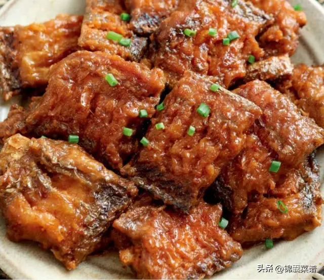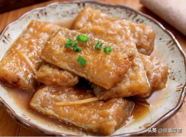 6.大火烧开后转小火炖七八分钟,大火收汁。将带鱼装盘,倒入锅里的汤汁,撒上葱花。