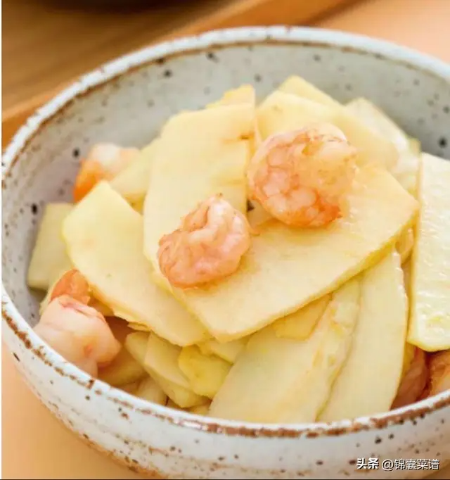 1.对虾洗净剥壳,挑去虾线;小葱洗净切成葱花,姜洗净切片;春笋剥皮洗净,切薄片。