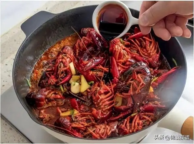 4.下入小龙虾煸炒 2 分钟左右,加入啤酒(没过龙虾),放入十三香酱料包。