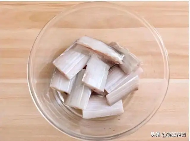 1.姜洗净切丝;带鱼清理干净,去掉头和尾,切长 5 厘米的段,调入盐和料酒腌渍 20 分钟。