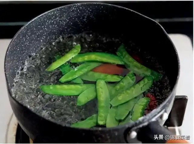6.下入青椒段,调入盐、白糖和生抽,中火煮 10 分钟左右即可出锅。