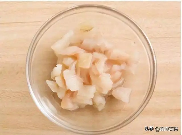 1.姜洗净切末;小黄鱼清理干净,从中间一分为二,切去鱼骨和鱼皮,鱼肉切丁备用。