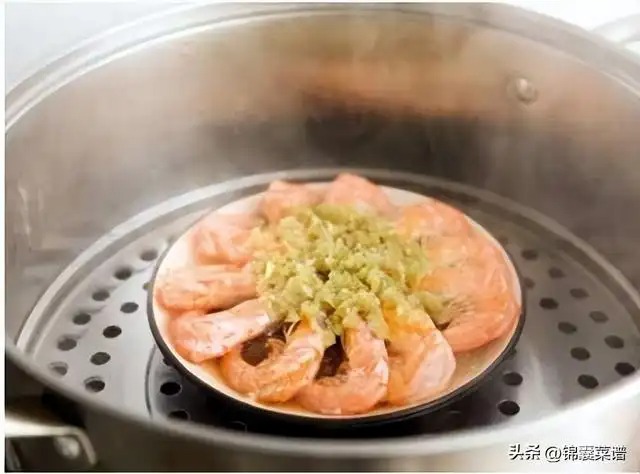 5.蒸锅中加入适量水烧开,下入对虾,中火蒸制 8~10 分钟,蒸好后取出即可。