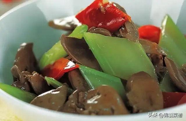 原料 鸭肝 200 克,西芹片 75 克,泡椒 1 个