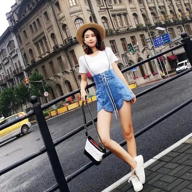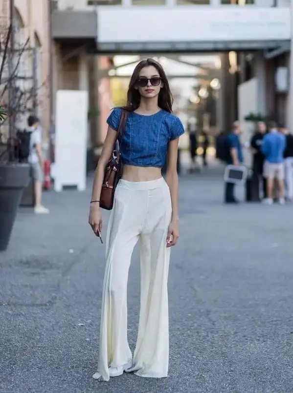 超短款的T恤在今年好像更加流行了。但不一定是露肚脐的那种款式。只要稍微露出一点纤细的腰,不光能展现你的好身材,还能让你的身体比例非常好。搭配高腰牛仔裤或高腰设计的半身裙,既时尚又显高。在视觉上增加身高的方法是缩短上身,延长下半身,打造出完美的身材比例。
