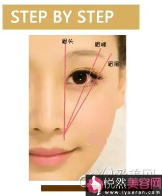 现在比较流行把眉毛画的较长,总结现在流行的眉,三个重点位置大概是: