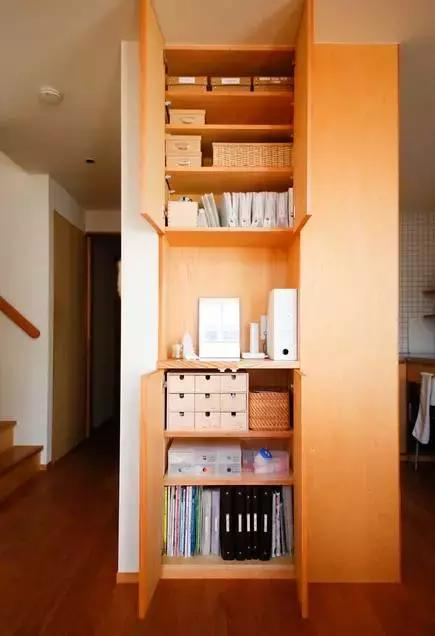一个柜子就把所有生活用品全部都收纳了,但是考虑到很多中国的房型设计,外面的空间可能没有那么大,其实这样的柜子也可以直接放在客厅,只要分类收纳,也是很整齐的。