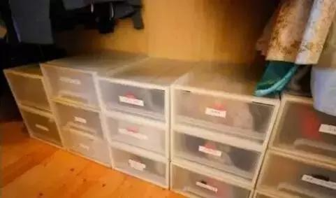 一些小的内衣、袜子等可以分类放在不同的透明盒子里,外面贴上标签,找的时候都非常方便。