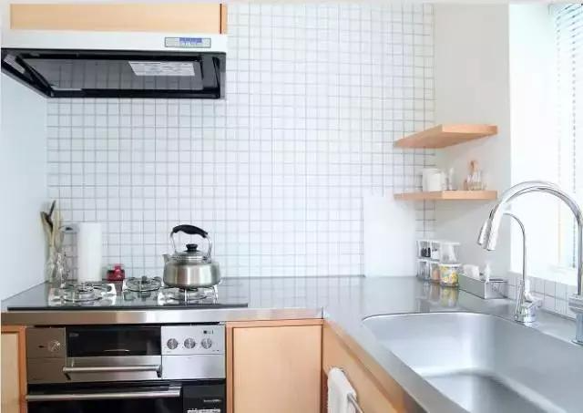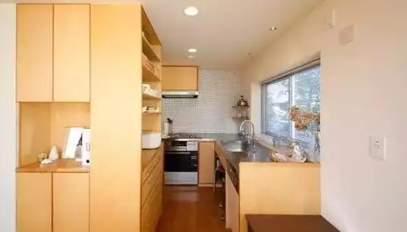 一间整洁干净的厨房,需要把动线化为最简,让便利性和舒适性相连。橱柜的颜色以原木色为主,与家中整体色调搭配,看起来非常清爽。厨房台面非常简洁,没有任何杂物,最常用的调料有序放在透明罐子里,一目了然,又非常整齐。