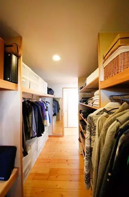 原来,森山为了卧室的整洁就没有布置衣柜,而是卧室旁边开辟了一个衣帽间。尽管衣帽间空间很大,但要装下一家四口的衣物和被褥,仍需要合理规划。按照她一贯的做法,一目了然才能避免物品的浪费。