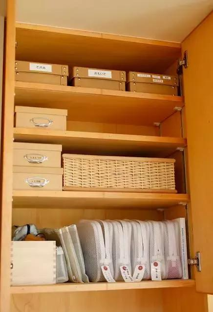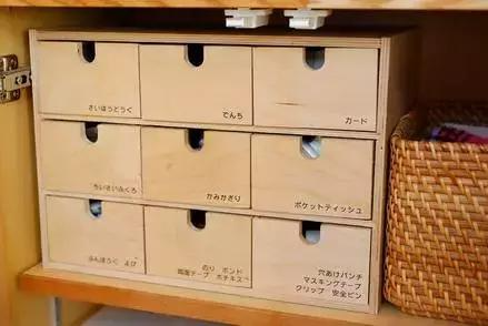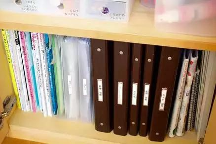 最下面是孩子们的各种文具,森山都用有标记的盒子分门别类地装起来,讲义也用颜色统一的文件夹装起来。