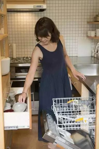 一转身,餐具就可以很容易地从洗碗机移至收纳区,是最佳厨房动线的设计。