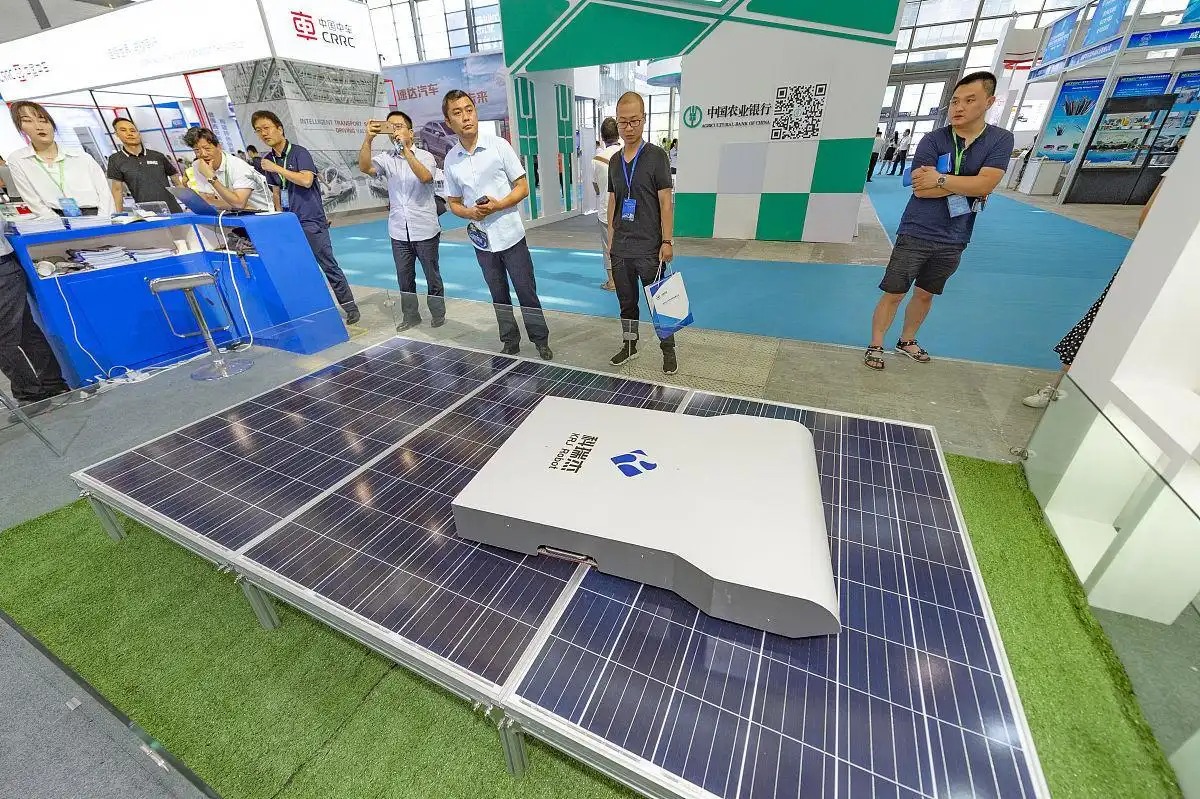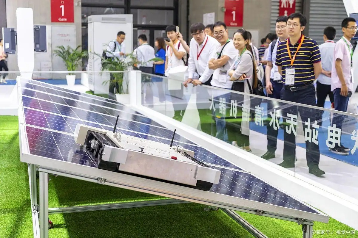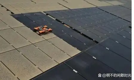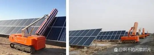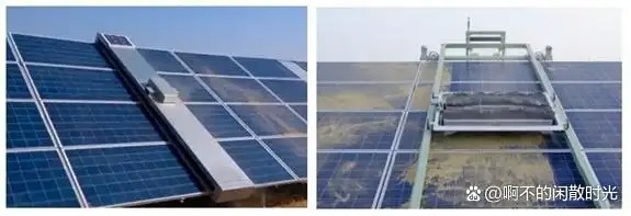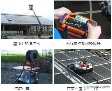 为有效提**洗分布式太阳能发电板表面的灰尘的效率,使用智能清扫机器人进行定期清扫,彻底清除光伏组件表面的灰尘及污垢,以提升发电效率。其方式是电站每排(也可以安装换行小车,多排共有一个机器人)光伏组件安装一台光伏组件清洗机器人自动定期清扫,无人值守。可自带光伏组件及蓄电装置,无需外部电源。
