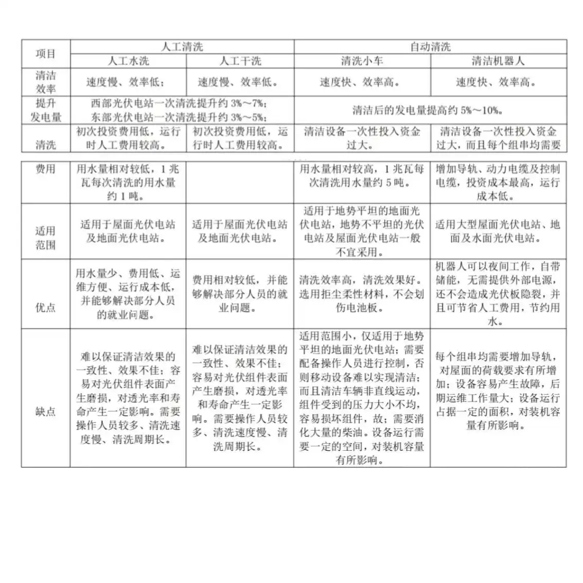 光伏组件的使用寿命都在 20 年以上。为了在使用期限内保持正常的发电效率,光伏电站需安排专人定期对光伏组件表面灰尘、污染物进行清洁处理。清洁方案包括一般性除尘、局部清洗、整体清洗三种方式。