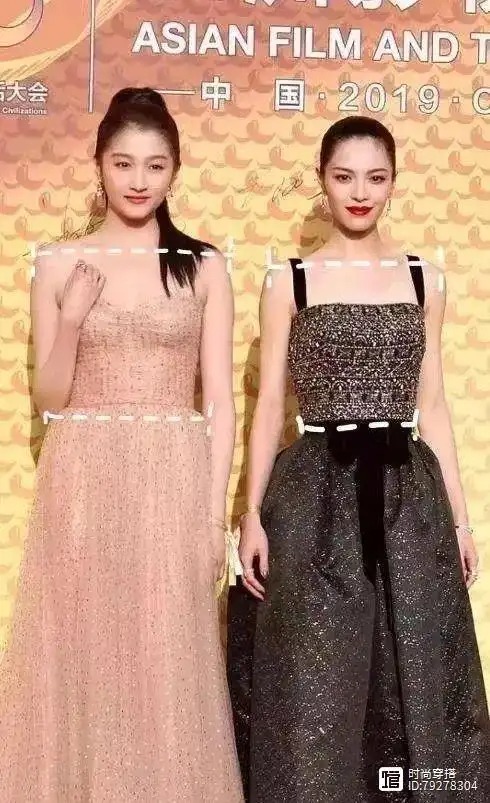 这类型的姐妹就参考蒋欣、陈妍希,还有美国甜心傻脸娜↓将焦点移到上半身,同时强调腰线,以平衡下半身的比例,削弱下围。