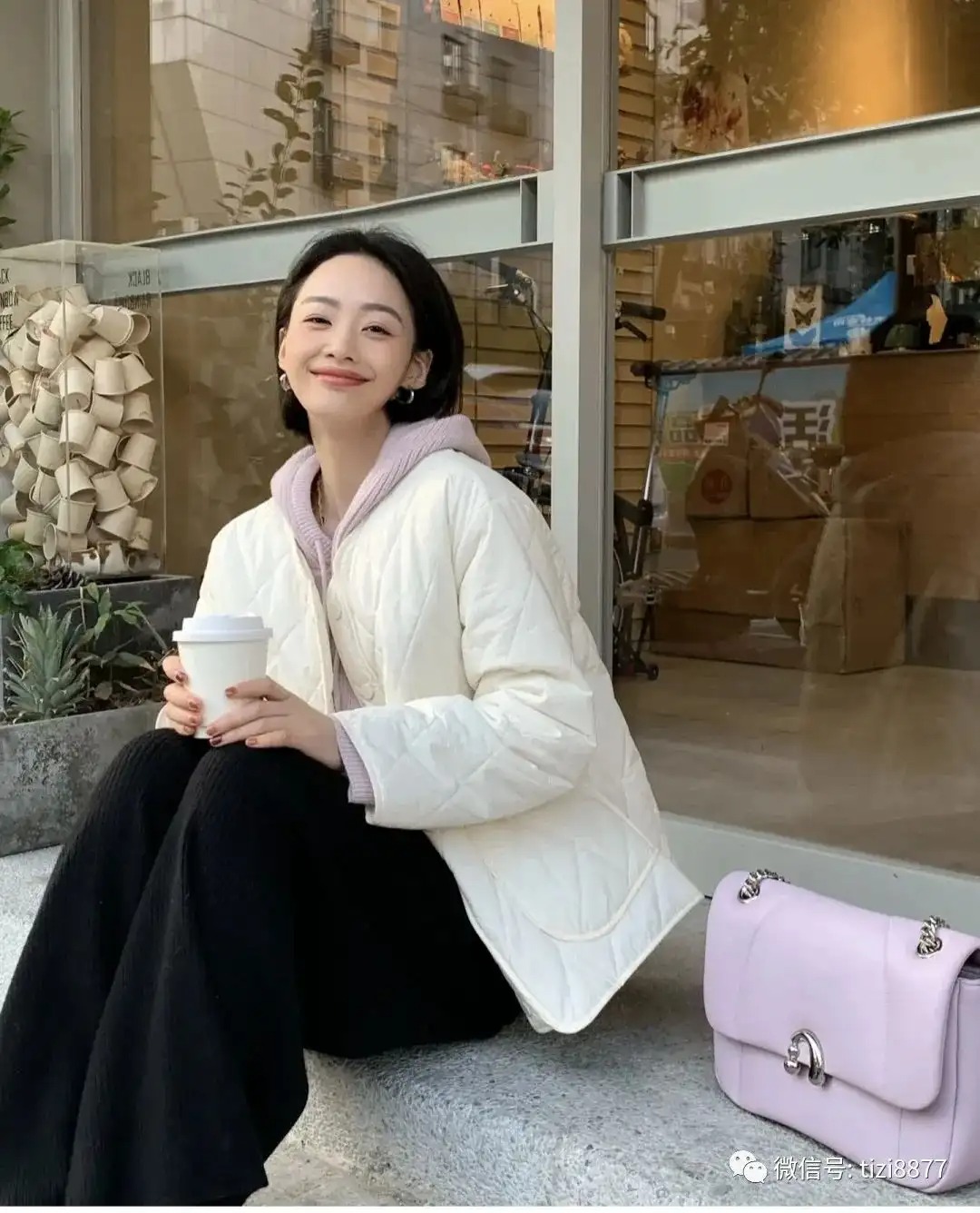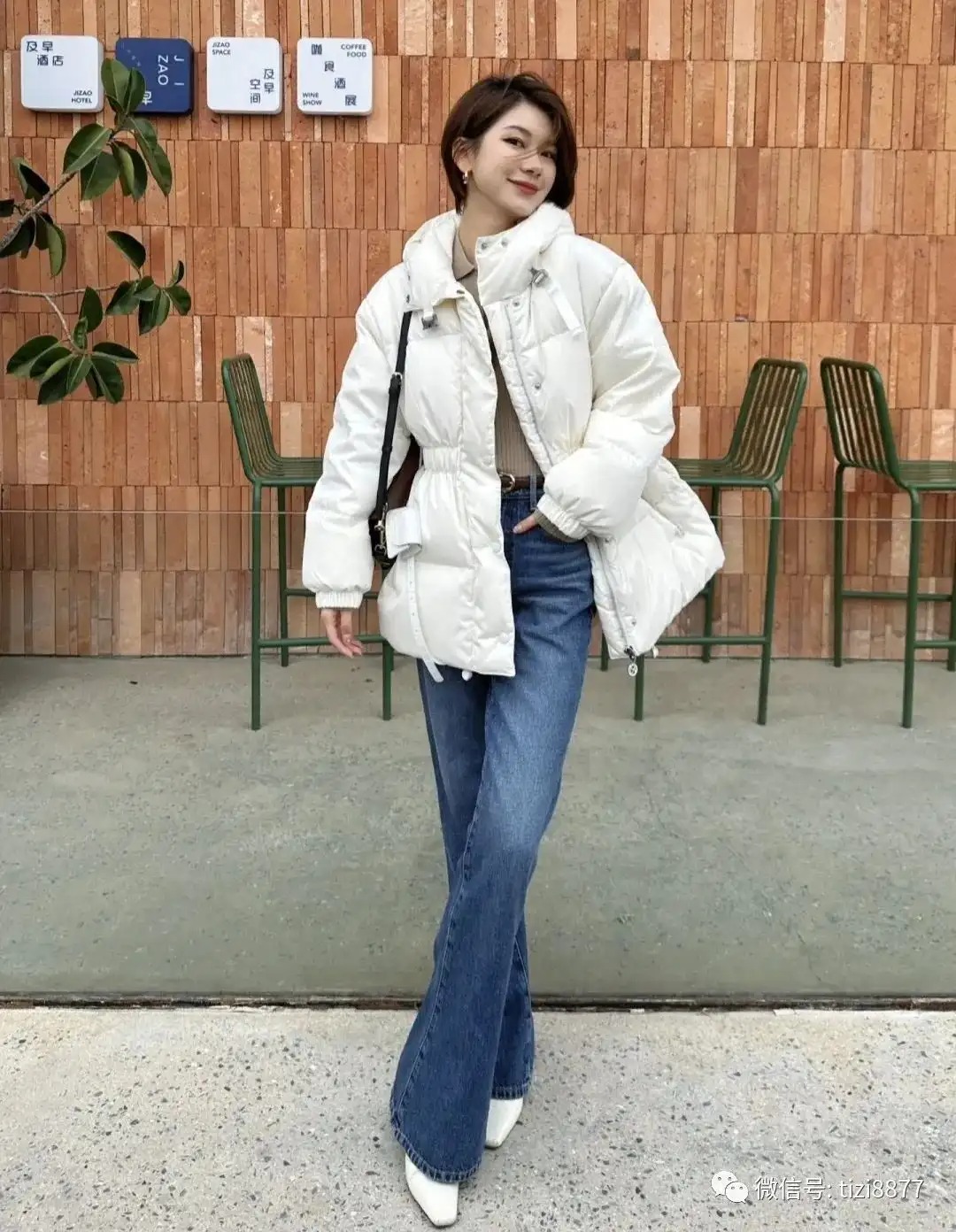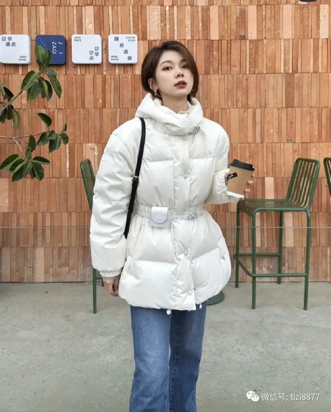 降温后翻出早就准备好的厚实羽绒服,安全感拉满了,白色羽绒服也太亮眼了,收腰的小腰包也不显臃肿,内搭卡其色针织衫和蓝色微喇牛仔裤,一套日常通勤均可~
