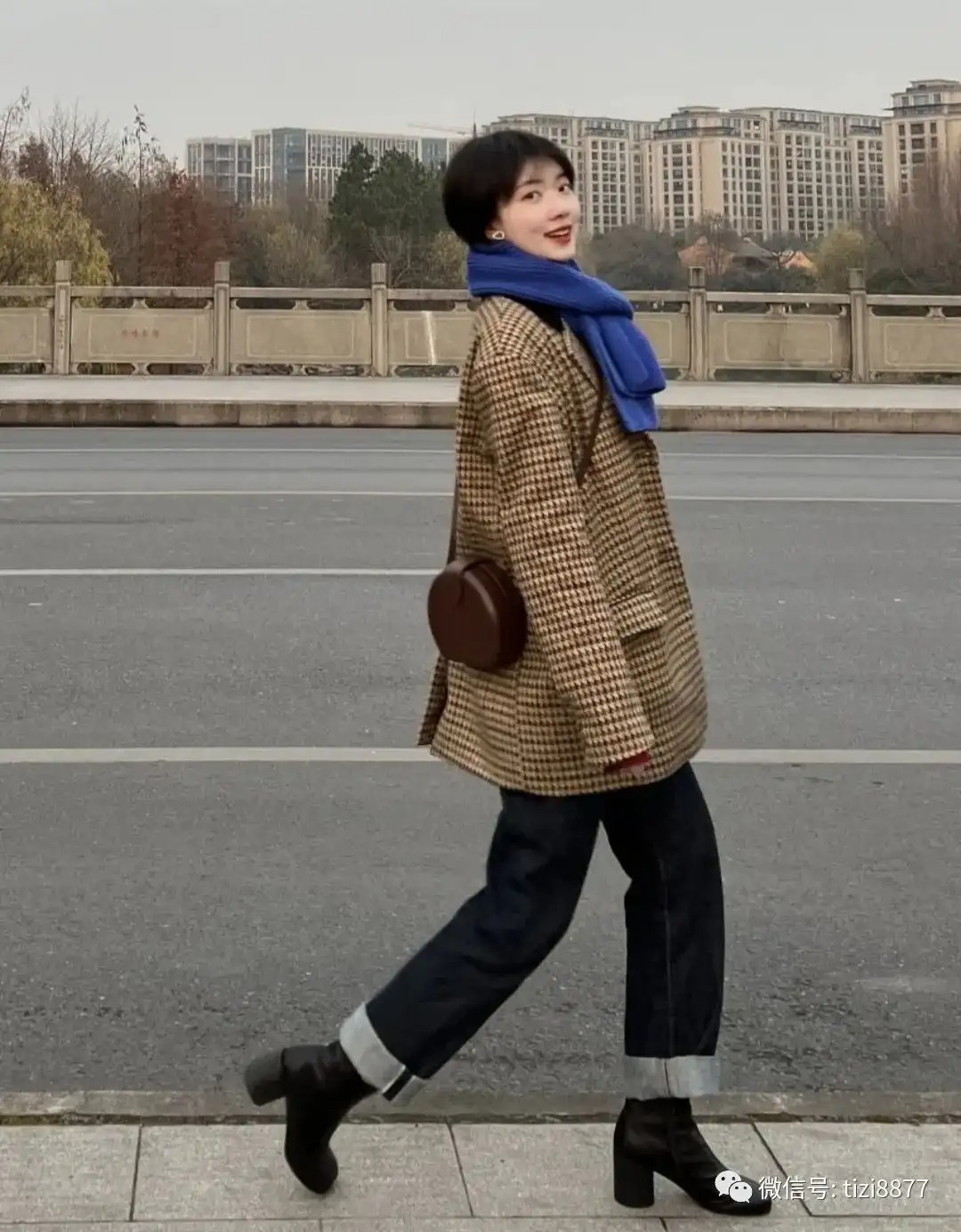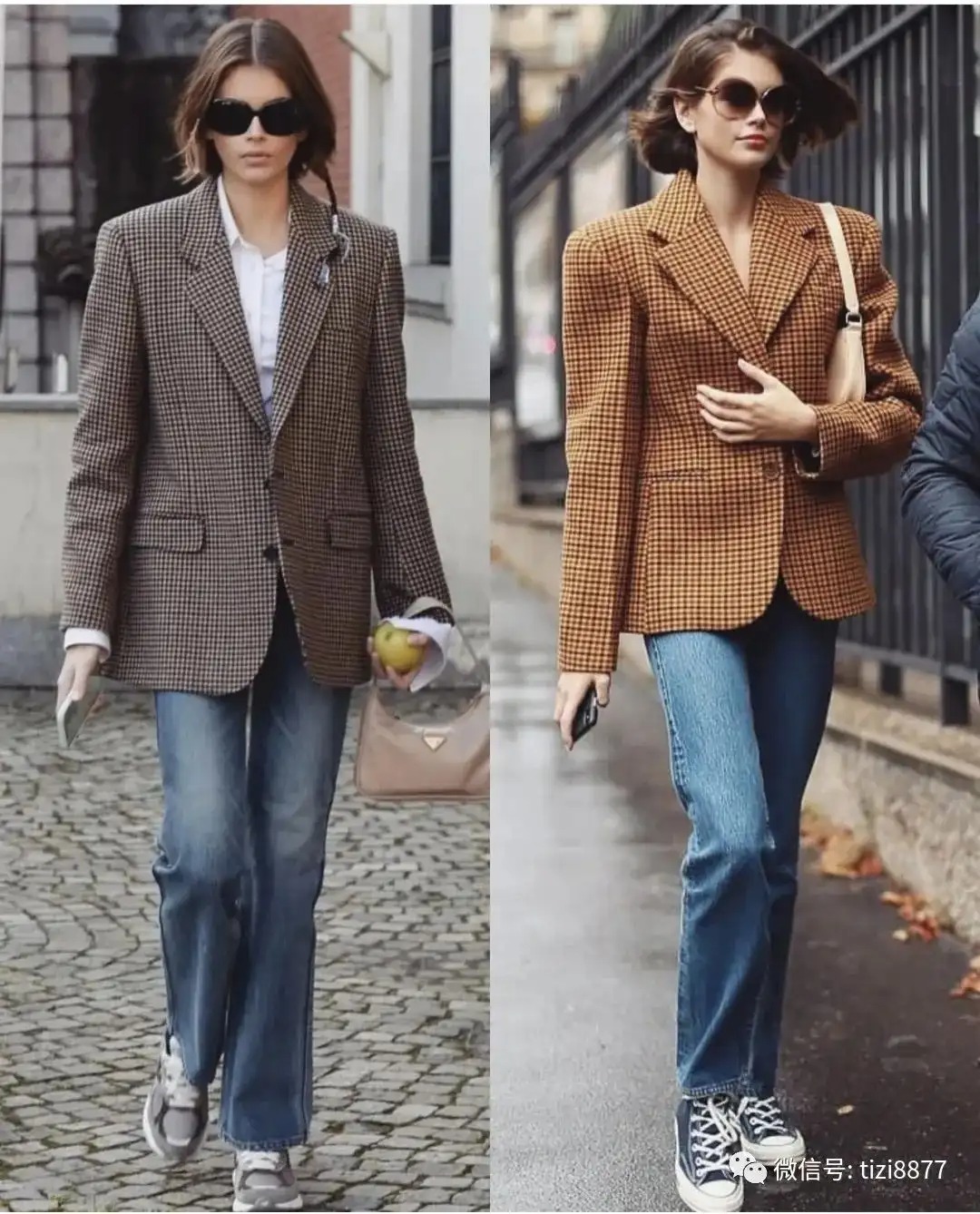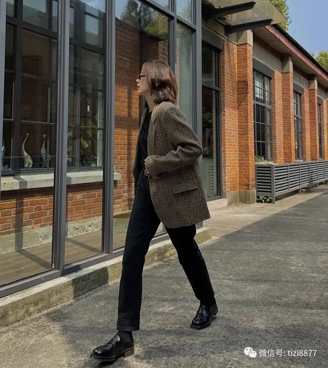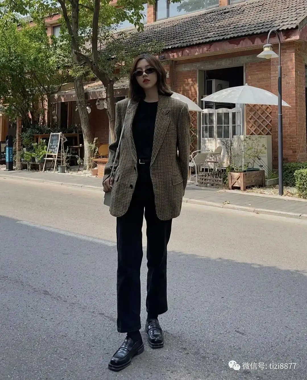秋冬怎么能没有格子西装呢?单穿或是叠穿都是经典百搭单品。这身穿搭是基础款搭出简约酷飒感,内搭选择了黑色系,显瘦又耐看,外套搭了格子西装,整套look就很出彩了~