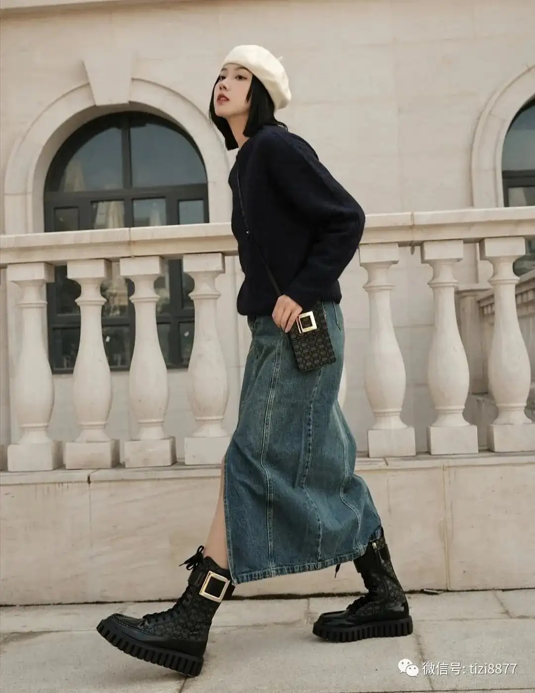 look5 大衣+黑色高领/蓝色牛仔裤./短靴