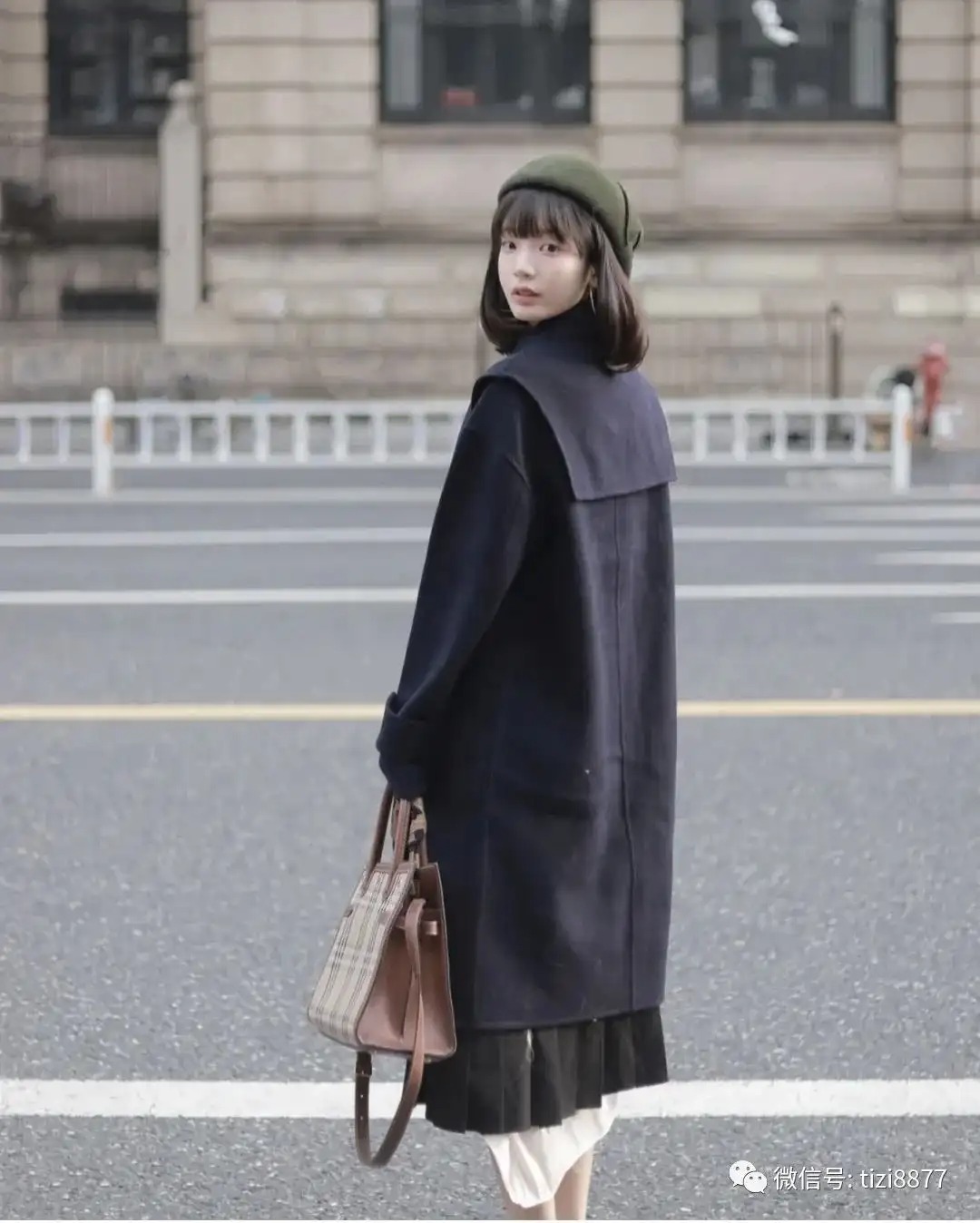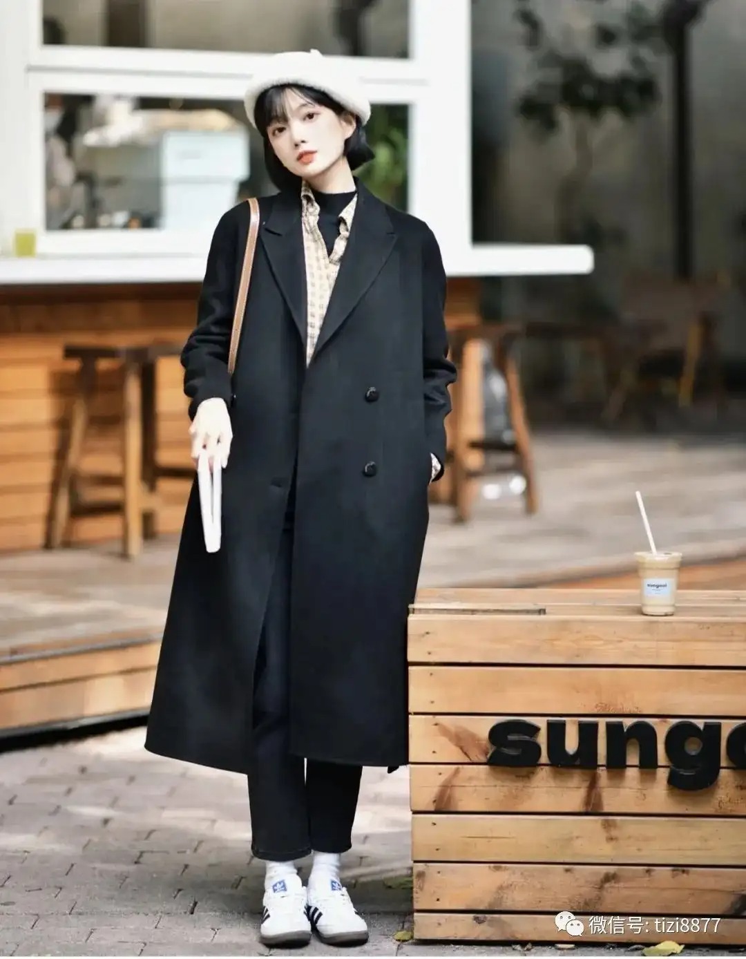 短发和黑色大衣真是秋冬感撞满了,这件黑色的牛角扣大衣和短发可真配啊,感觉再带个围巾就更好看了,搭配半身裙和贝雷帽韩系氛围感一下子就上来了~