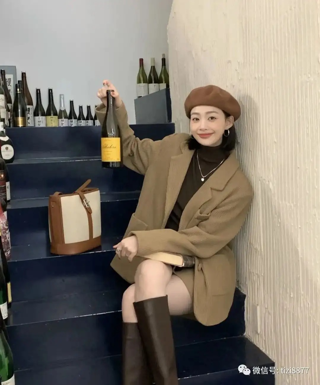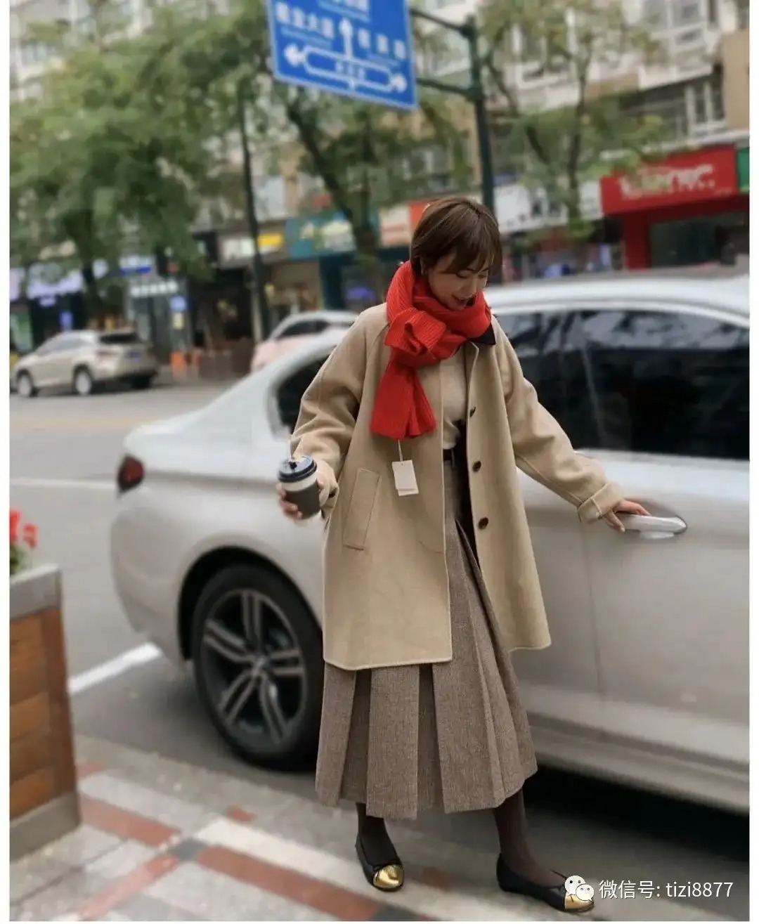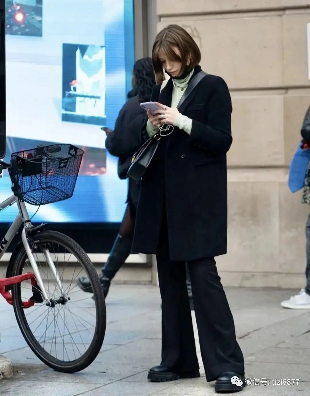 短发+牛角扣就是秋冬氛围感!拥有了秋天的第一件牛角扣大衣,搭配同色系的内搭和百褶裙裤+黑色松糕皮鞋,一套减龄又有学院风!