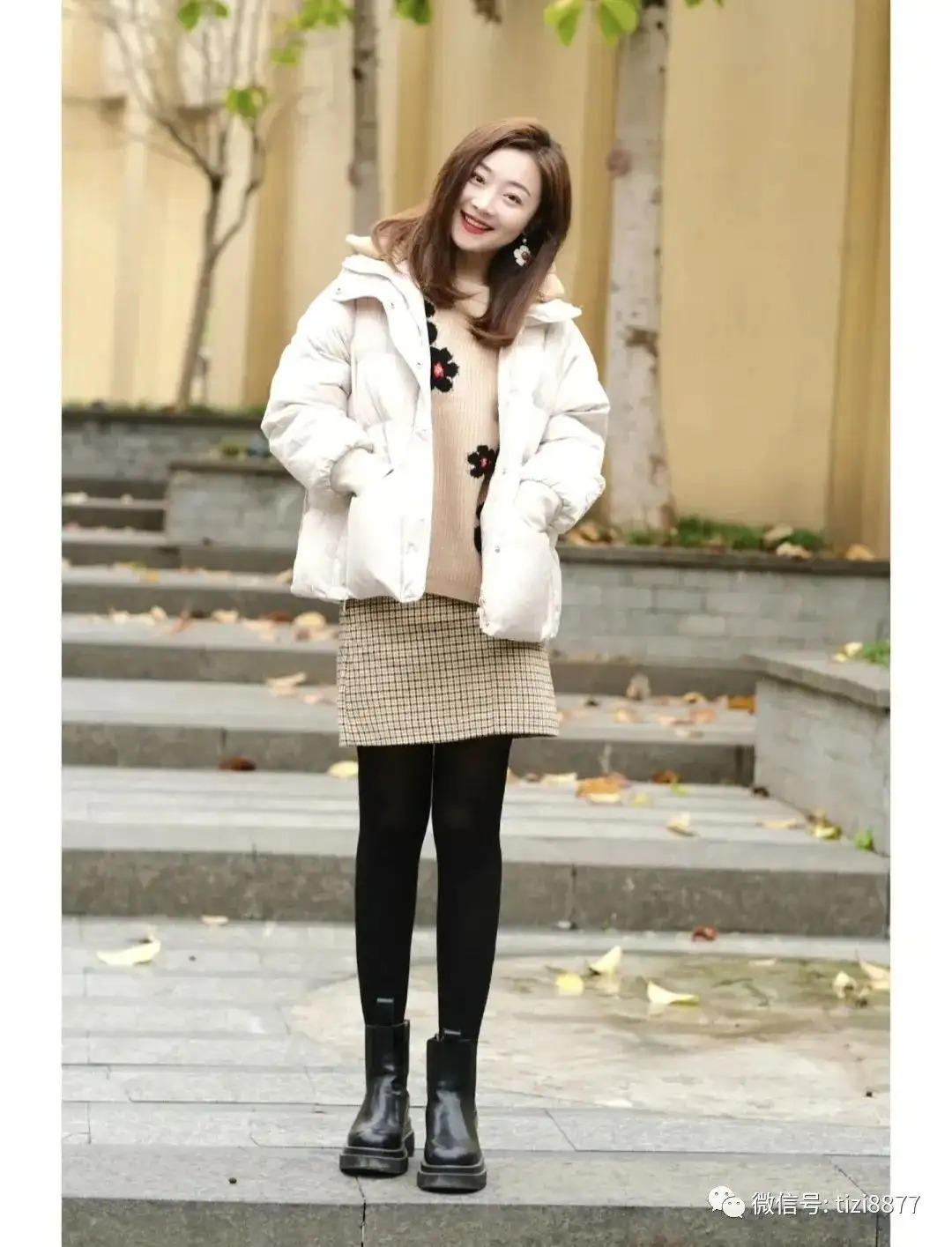 突然降温到零度,立马拿出羽绒服,卡其色小花花的毛衣搭配格子裙很减龄可爱,上面穿上短款收腰羽绒服,一套搭配在冬季时髦也不显得臃肿,严寒的冬季这样穿多了些生机~
