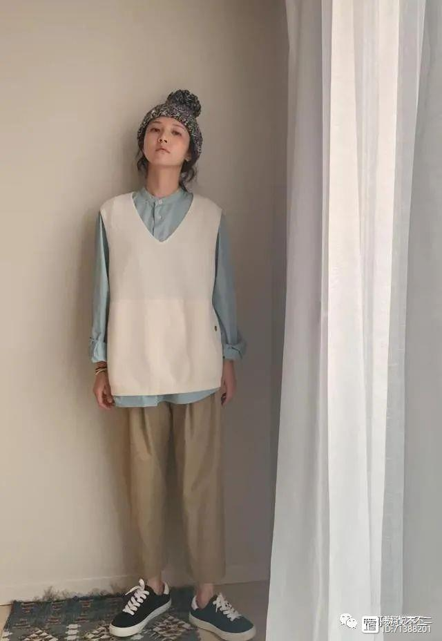 日系叠穿单品有长款针织开衫、长款风衣或者工装风衬衫,或者是针织坎肩。这位日系人气博主个头矮小,在她的穿搭中,宽松感针织坎肩出镜率很高,既不会像长款开衫或者风衣压个子,还温柔又舒适,学院气息满满。