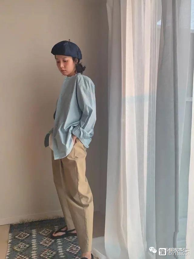 这件小个子博主在穿搭中并没有注重显高,而是怎么舒适温柔怎么穿,视觉上温柔不失俏皮灵动,雾霾蓝衬衣叠穿白T,卡其色萝卜裤质感随性,给人感觉很舒服。