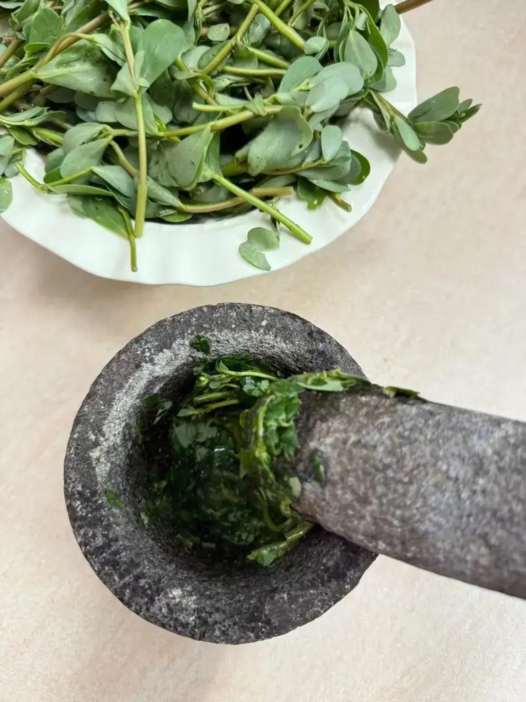 - 新鲜马齿苋:一把就行(大概50克,选嫩点的,没开花的,掐掉老根,洗干净沥干水,不然捣的时候会出水太多);
