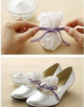穿鞋之前,先在鞋内洒些小苏打粉,不但可以避免脚臭的发生,而且将来洗鞋子时,其内部也更容易清洁。