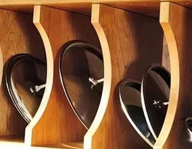 3、锅盖与锅子分开收纳:每个锅盖放在一个格子里,使用时也很方便拿取。锅子视情况可以堆叠节省空间。