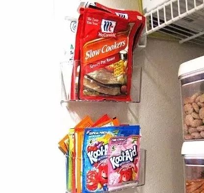 7、调料、香料包等:包装轻薄的可以用固定在柜子壁上的小盒子收纳。既避免丢失,又不占地方。