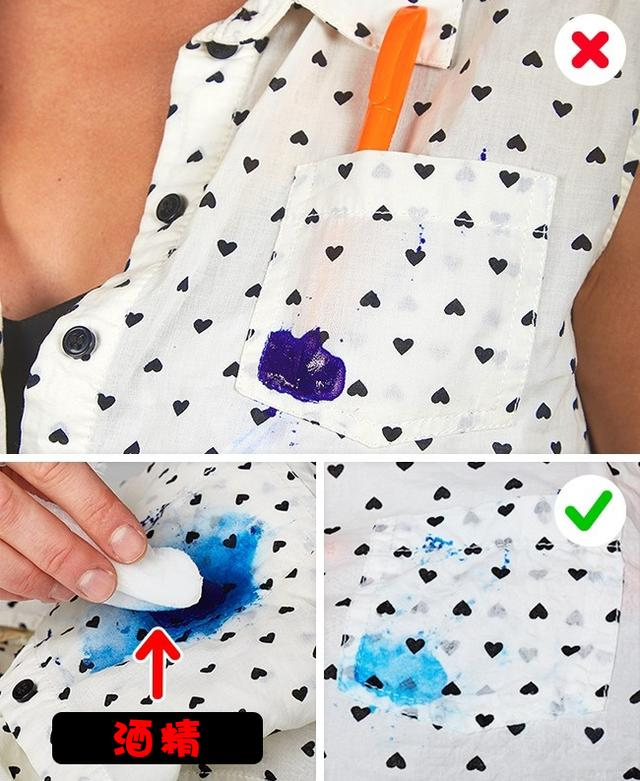 把一块衣服(污迹)放在纸巾上,然后用浸透了酒精的棉花垫摩擦背面。别忘了换毛巾以取得更好的效果。