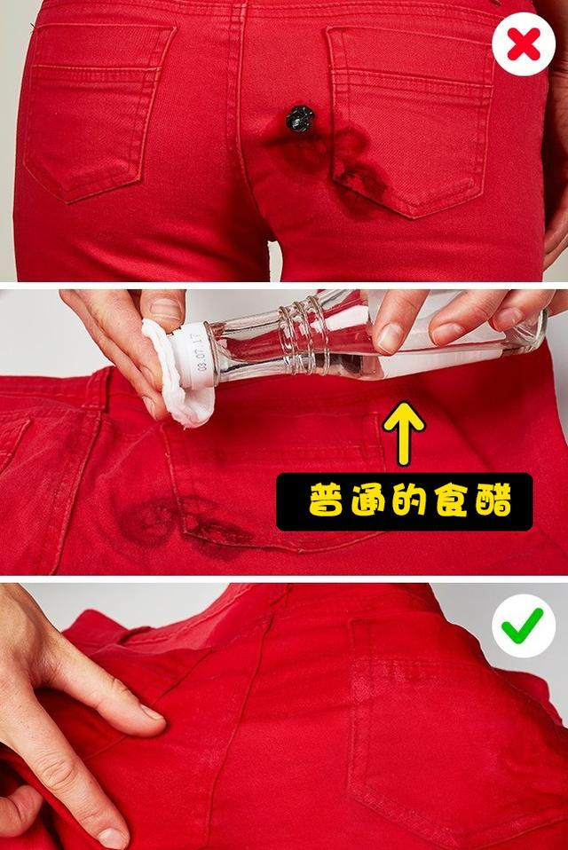 在普通的食醋中浸泡化妆棉,并将污渍浸湿。然后用冷水冲洗这件衣服。