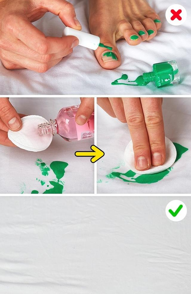 指甲油用一个笨拙的动作“攻击”你的衣服和床单。这个污点可以去掉,但你得努力。