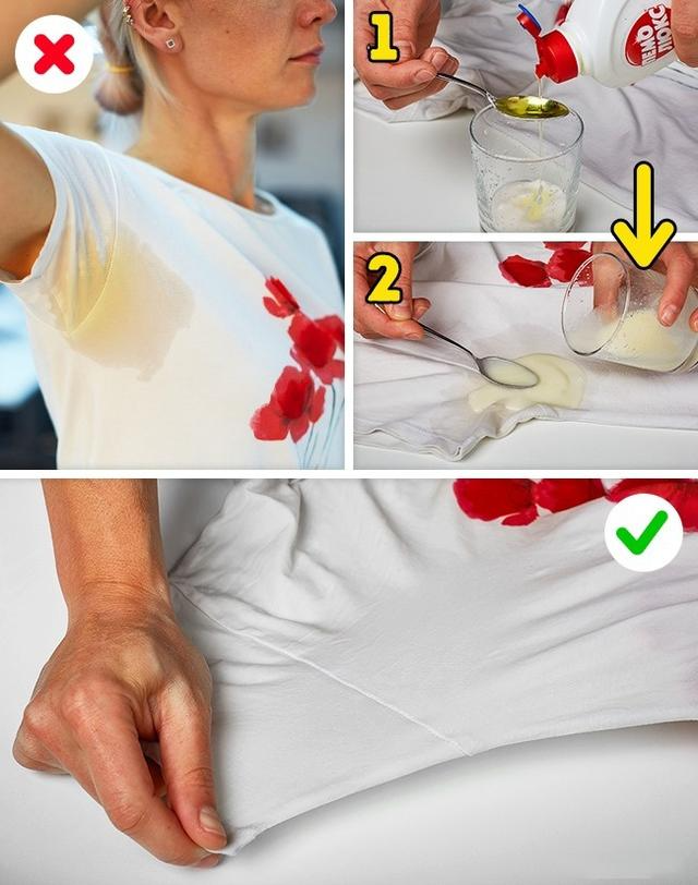 用白醋和洗碗液把你的衣服放进温水里。等一段时间,用温水冲洗衣服。