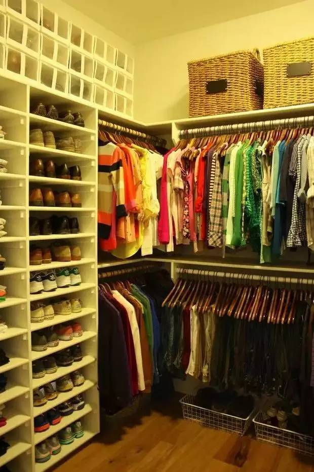 皮鞋擦干净,按照材质和颜色分类摆放,衬衫按照颜色挂好,再多也不会乱。